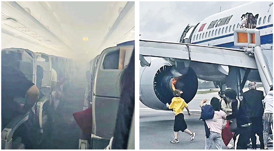 國航赴星客機引擎起火 乘客滑梯逃生