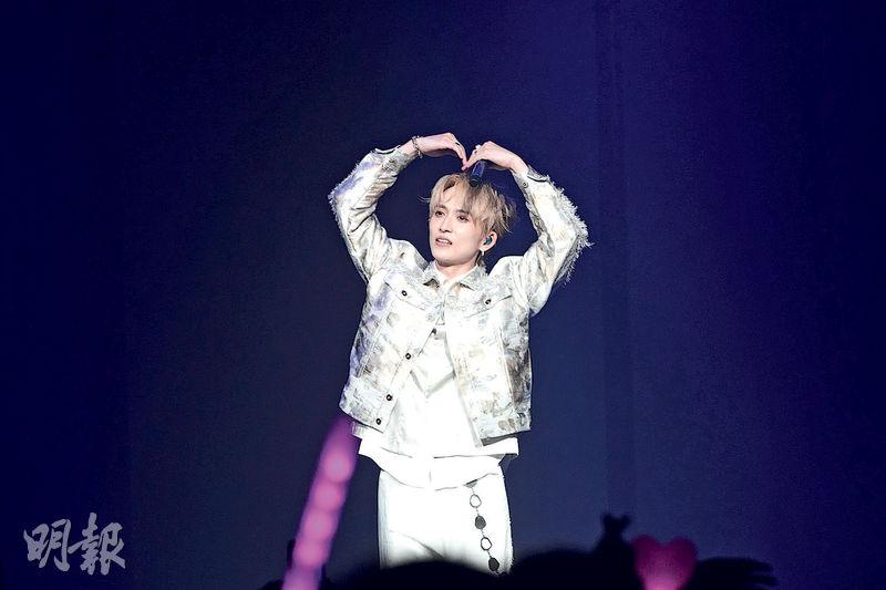 【明報專訊】台灣男團五堅情成員邱鋒澤一連兩場《DEEP AWAKENING》香港個唱前晚舉行尾場,獲好友呂爵安(Edan)與李駿傑(Jeremy)捧場。邱鋒澤大騷廣東話跟香港粉絲互動,更獻唱Edan廣東歌《一表人才》,又在台上感激Edan與Jeremy到場,稱每次來的時間總和兩人搭不上,希望今次能夠相約吃飯。
