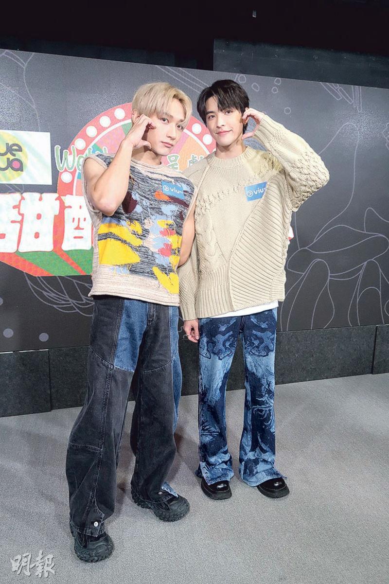【明報專訊】王智騫和范麒智昨日出席ViuTV旅遊節目《甜酸苦辣鮮》記者會,擔任主持的二人分享到台灣、新加坡拍攝外景的趣事,又示範做掌上壓操肌秘訣,范麒智又玩「壁咚」嚇驚王智騫。