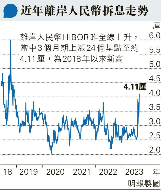 3個月離岸人民幣拆息見5年高