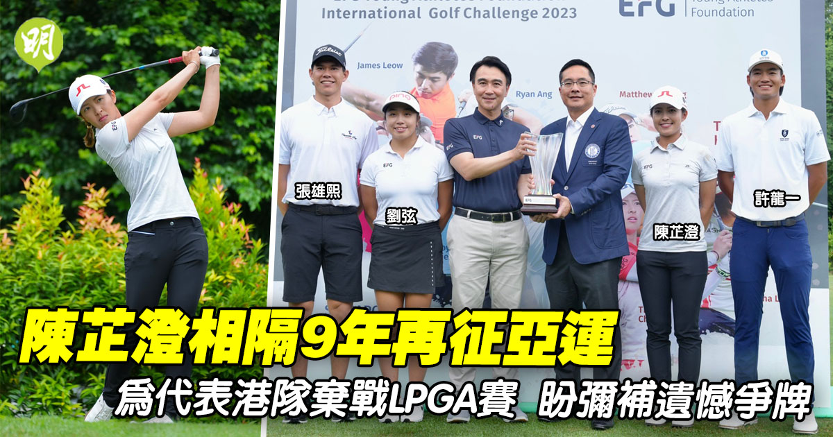 杭州亞運將於下周六開鑼,今屆高爾夫球准許職業球手參賽,讓本港首名打入美國女子職業高爾夫球巡迴賽(LPGA)的陳芷澄,自2014年仁川亞運後再次為港披甲。對於相隔9年再戰亞運,陳芷澄難掩興奮,並透露為此棄戰兩站美巡賽,「我成為職業球手後,本以為自己沒機會再打亞運,但得悉賽會宣布職業球員可參賽,我馬上告訴香港職業高爾夫球協會我願意參賽,即使要缺席LPGA賽事,但毫無疑問我想代表香港比賽」。