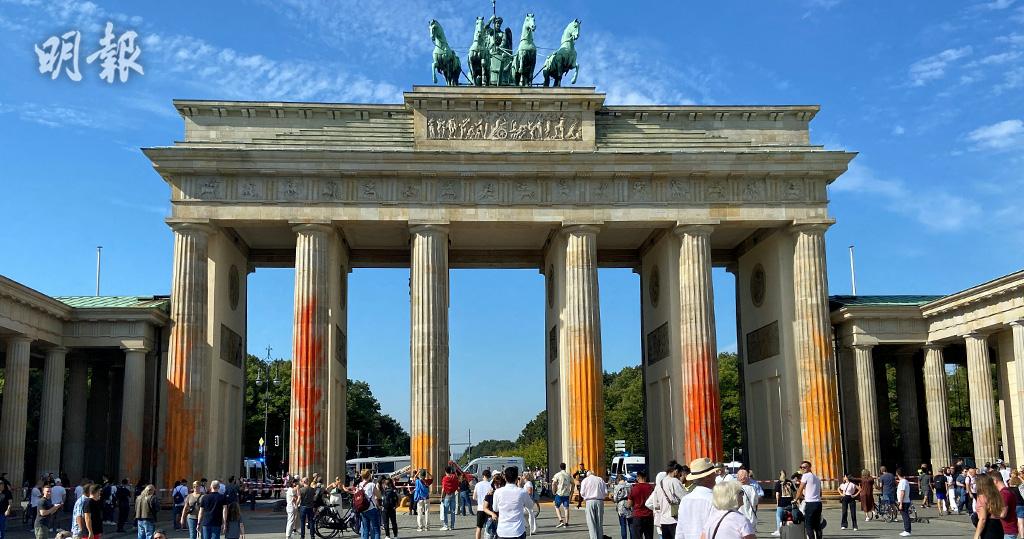 環保組織「最後一代」(Last Generation)多名成員,周日(17日)於德國柏林向著名景點勃蘭登堡門噴漆,其6條支柱和前方的巴黎廣場被噴上橙紅色油漆,要求政府就氣候變化採取更多行動,包括在2030年前停止使用化石燃料。警方封鎖現場,並拘捕14人。