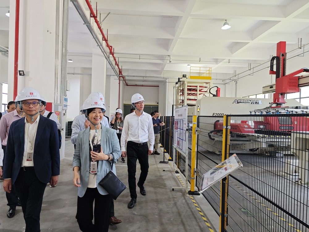 何永賢一行人上午抵達珠海,先到訪中海海創智造科技(珠海)有限公司,參觀數字展廳和生產線,聽取機電裝備合成法模組的生產流程、如何自動化和高效地生產機電裝備成品。