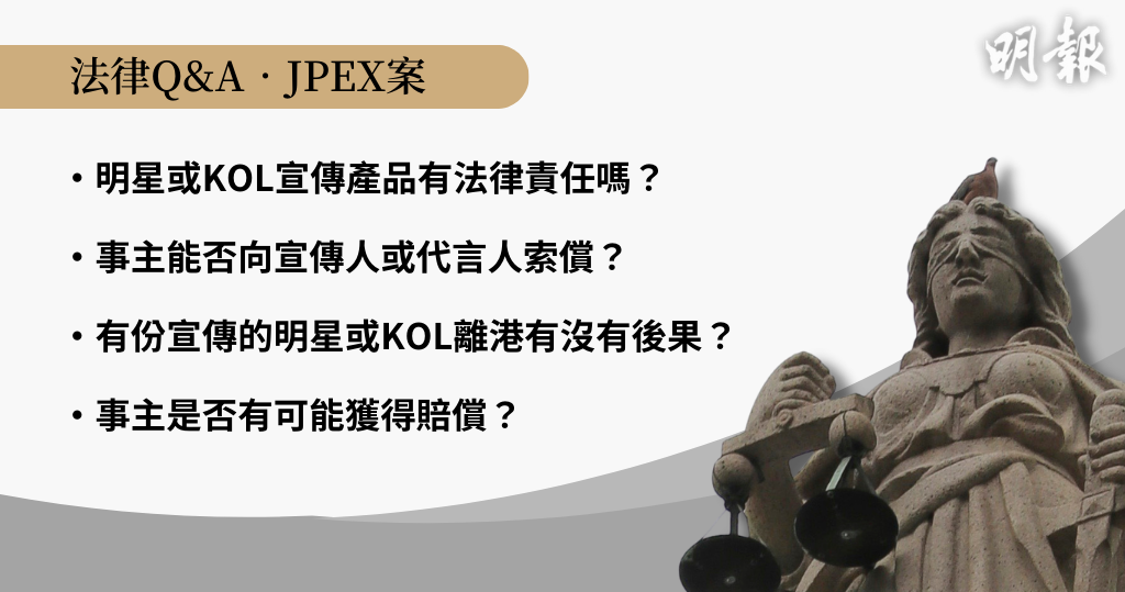 問:JPEX事件中的事主能否向宣傳的明星、KOL或代言人追討責任或索償?