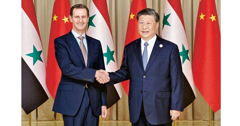 這是巴沙爾時隔19年再次訪華,雙方會後發表兩國《關於建立戰略伙伴關係的聯合聲明》還提到,敘方支持中國政府為實現國家統一所做的一切努力;堅定支持中方在涉港問題上的立場,堅決反對藉口涉疆問題干涉中國內政。中國敦促相關國家立即解除所有對敘利亞非法單邊制裁。雙方一致同意合力打擊恐怖主義。