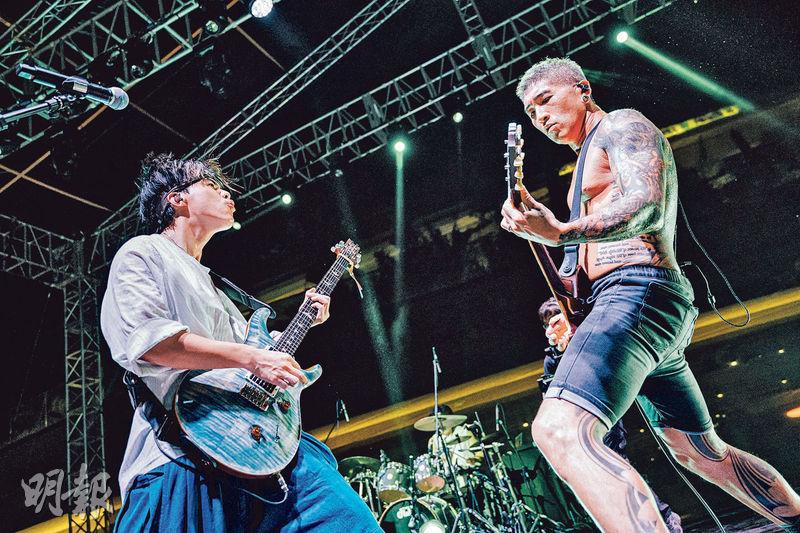 【明報專訊】樂隊KOLOR與Revery日前在水上樂園的全新音樂會場地「AQUALAND」演出,開騷前舉行開幕儀式。KOLOR主音Sammy(蘇浩才)表示支持業界設置新表演場地,令樂隊有更多演出機會,「這些戶外中小型場地真的不多,我們睇住Revery大,所以一定要支持!睇住佢哋愈來愈大隻,他們是一隊好健康的樂隊,成日運動,佢哋『毛都未出齊』我們已經認識,係好難得」。