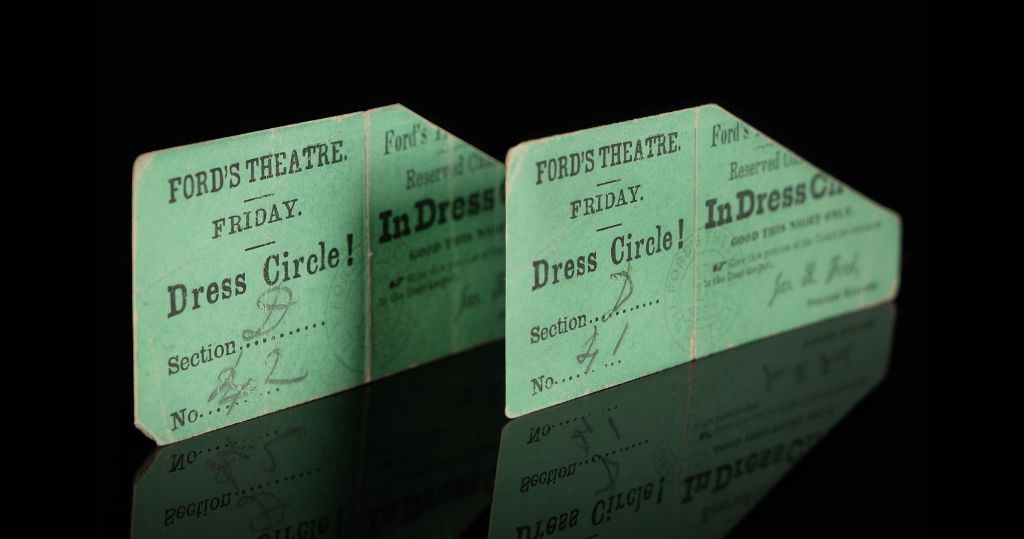 根據RR Auction網站,拍賣的門票是兩張前排包廂連位門票,票上分別用鉛筆寫着「D」區「41」及「42」號座位,並印有演出的地點「Ford’s Theatre」、日期「APR 14 1865」及「This Night Only(只限此夜)」等字眼。目前全球已知只剩3張當晚的門票,第3張僅存門票左半邊票根,正存放在美國哈佛大學圖書館內。(美聯社/RR Auction)