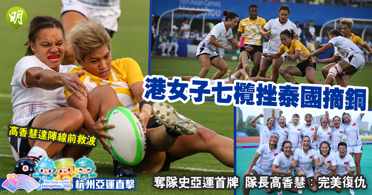 香港女子七人欖球隊今午(26日)在銅牌戰以7:5擊敗泰國隊,贏得隊史首面亞運銅牌。