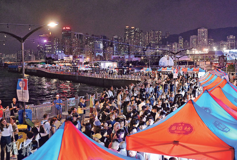 【明報專訊】「香港夜繽紛」頭炮、灣仔海濱夜市「海濱藝遊坊」昨午3時開鑼,約8時為人流高峰,有市民形容氣氛不錯,惟現場攤檔自前日起一直未有電力供應,令各熟食檔大失預算,直至昨晚6時、即熟食區營運時間開始後才陸續有電,但部分檔主申請加裝的額外插頭仍未供電。大批檔主昨午到場才得知未有電力,憂慮食材會變壞,部分人自行購買冰粒以暫存冷凍食品,冀減少損失。活動統籌方昨日解釋,由於場地原作休憩之用,需升級設計才可達到電力要求。
