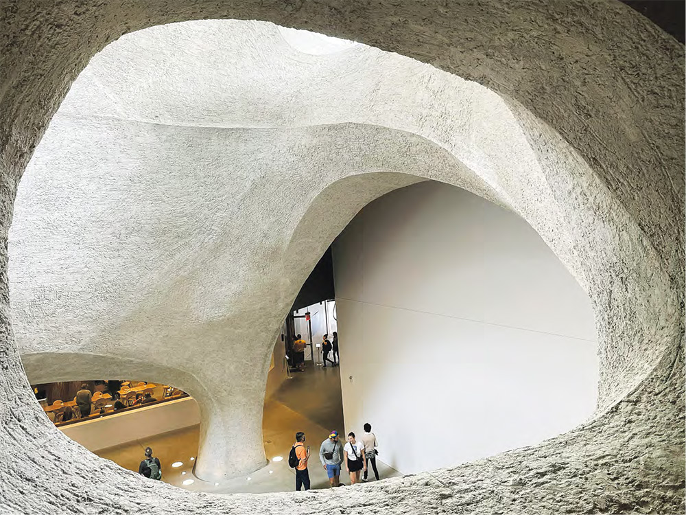 若說她過去的設計多是糅合自然圖案在建築之中,那麼自然史博物館新館這項目便更為突破。5層高的新館由內至外,完全以不規則的峽谷結構作為本體,從新博物館入口步進中庭,舉目向上是錯綜複雜的石牆和通道,中庭和各層「峽谷」並無柱樑,全靠岩石般的主力牆支撐,方便遊人自由游走各個展覽區域。