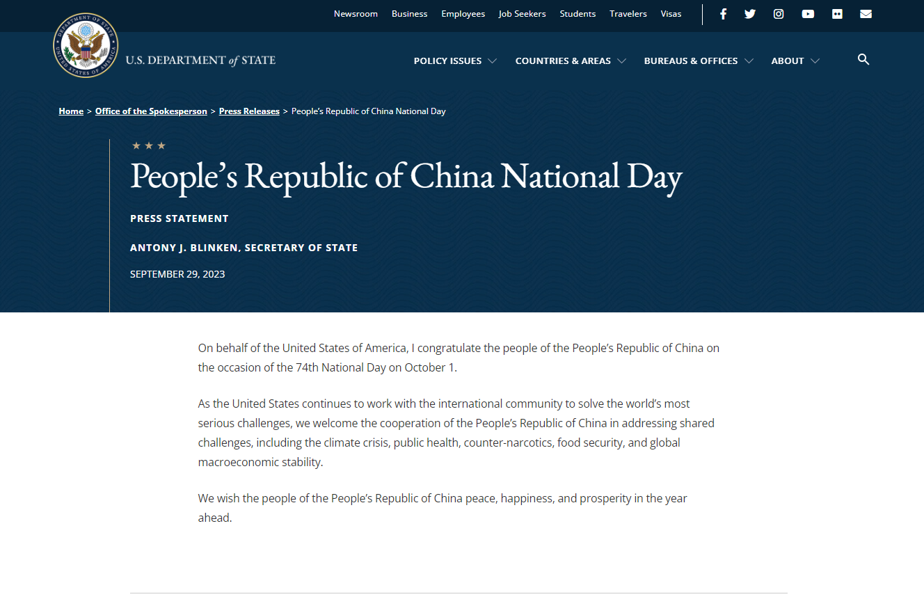 即時兩岸 布林肯祝賀中國國慶 呼籲合作範疇增兩項 (20:59) 發佈於 2 年 前 2023 年 9 月 30 日 By 明報 美國國務卿布林肯9月29日發表聲明,代表美國向中華人民共和國人民祝賀國慶74周年,稱美方繼續與國際社會合作解決全球最嚴峻的挑戰,歡迎中國在應對共同挑戰方面進行合作,包括氣候危機、公共衛生、禁毒、糧食安全和全球宏觀經濟穩定。他又祝福中國人民在新的一年平安、幸福、繁榮。 對比2022年的聲明,布林肯今年賀詞提出的合作範疇,增加了糧食安全和全球宏觀經濟穩定兩項。 (美國國務院) 相關文章: Up Next 台軍事迷團體稱解放軍機以國泰航機掩護 台國防部:渲染臆測 (19:17) 不要錯過 回應散佈假資訊指摘 外交部:美國才是名副其實的「謊言帝國」 (22:11) 繼續閱讀 贊助商 猜你喜歡