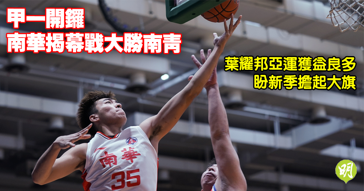 香港籃球聯賽男子甲一組賽事今晚(17日)假修頓室內場開鑼,衛冕之師南華在揭幕戰點點開花、共4人得分上雙,終以87:62擊敗「兄弟班」南青旗開得勝。射入全場最高17分的葉耀邦,表示早前在杭州亞運獲益良多,盼今季為南華擔起更大責任;至於永倫在尾場以89:67力克建龍飛馬。