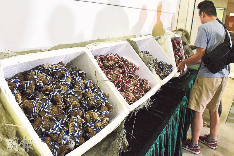 今年9月1日起,海關聯同食安中心展開為期3個月的聯合行動,於海陸空各口岸打擊走私大閘蟹。截至前日為止,海關總共轉介35宗案件予食安中心跟進,其中17宗案件,涉及約1400公斤、7800隻大閘蟹沒有相關衛生證明書。