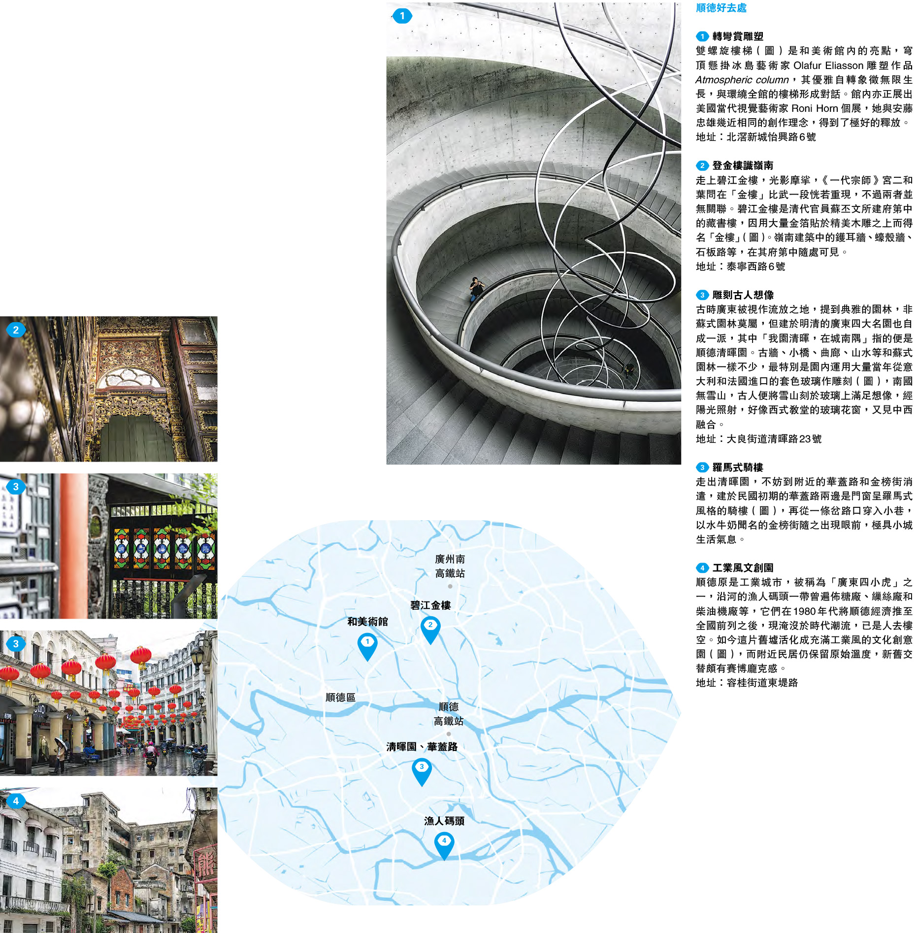 【明報專訊】因美食享譽海外的佛山市順德區,城市節奏很慢,老人喜歡坐在路邊打牌,外牆發霉的民居散發着潮濕氣味,日久失修的祖屋被竹棚包裹着,的士司機打開收音機,抑揚頓挫的廣府話聽得親切。順德習武之人輩出,是李小龍和葉問師父陳華順的故鄉,武術講求「靈動」,而順德也是這樣的小城,可武也可「藝術」。