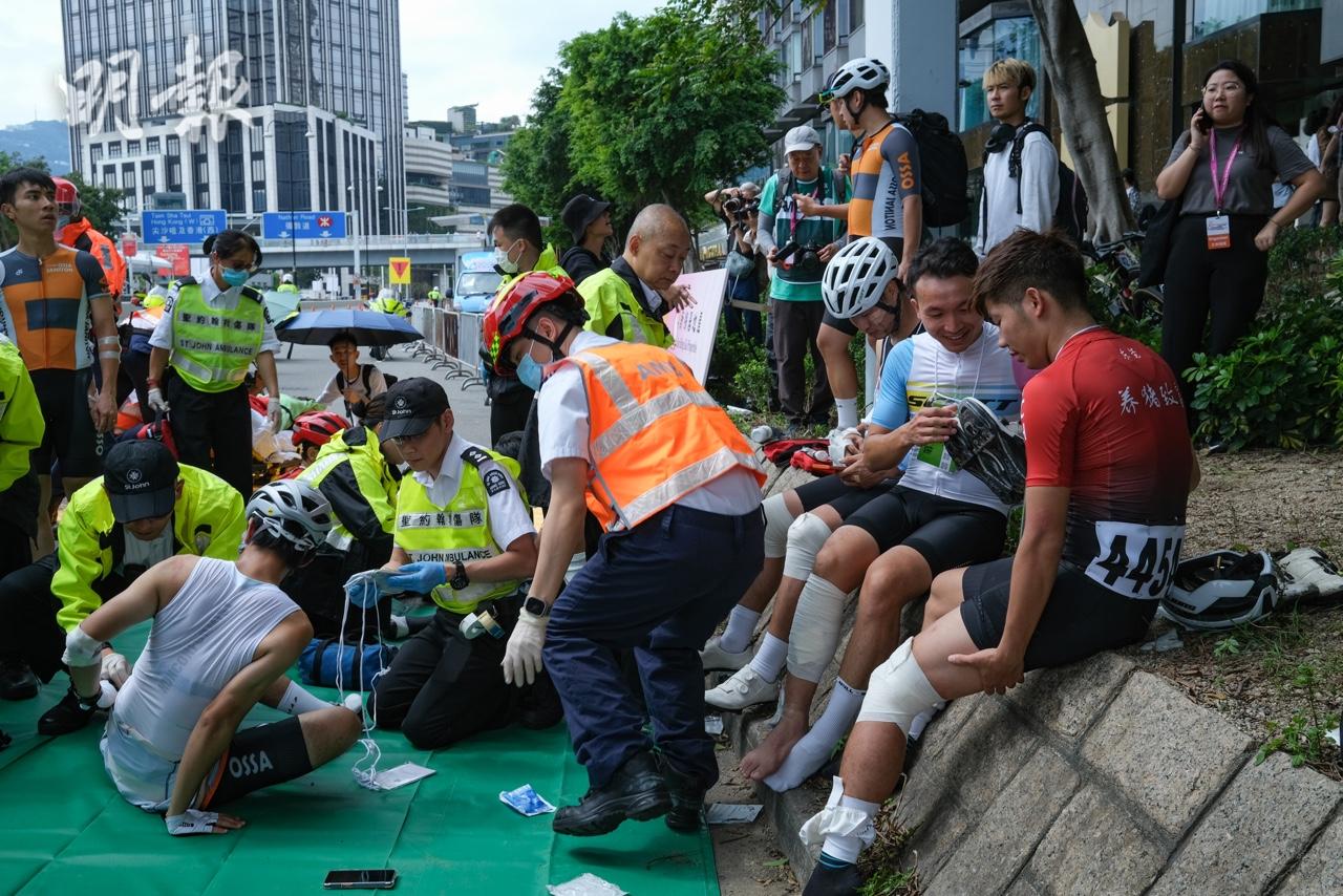 香港單車節有賽事中途發生意外,多名車手相撞,至少11人受傷,當中4人情況相對嚴重,救護人員即場為傷者包紮,部分人手腳受傷,亦有人傷及面部。現場所見,石壆留有血跡,附近遺下數塊帶血紙巾,意外發生後,有工作人員一度舉出紅旗暫停賽事。