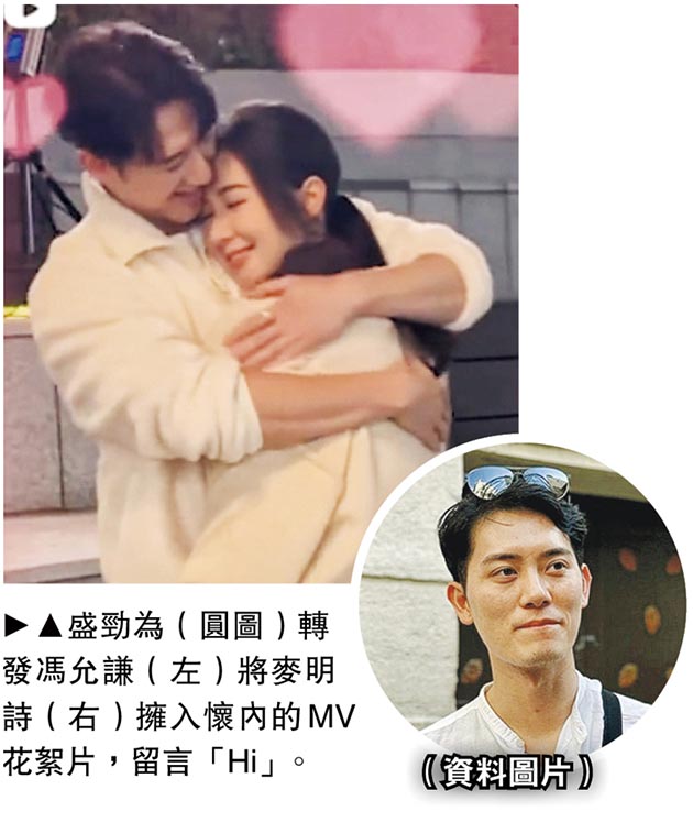 【明報專訊】麥明詩最近為馮允謙新歌《給你幸福 所以幸福》MV擔任女主角,她日前在社交平台分享拍攝時兩人的甜蜜互動照片,還借用了姜濤近日的金句「不想隱瞞了」。她表示很喜歡馮允謙,大讚對方好nice。
