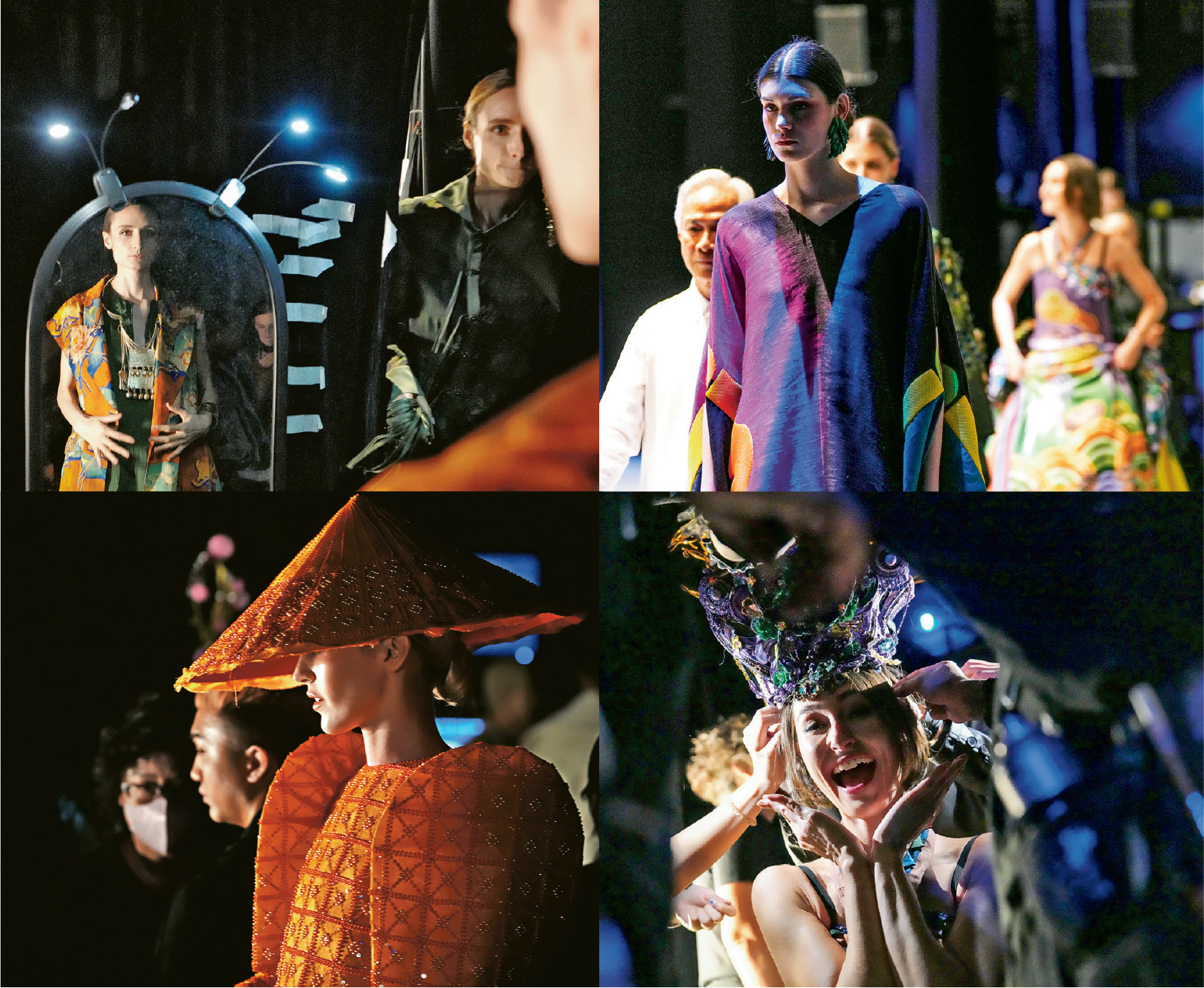隨後出場的是馬來西亞設計師Lee Khoon Hooi,在設計中大量運用一種名為Songket的馬來西亞金線織品,此乃當地人手工織造的傳統織品,透過運用金線及銀線,形成裝飾效果。緊接上場的是菲律賓設計師Dennis Lustico,他從菲律賓傳統服飾上的Terno(蝴蝶袖)及民族服飾Barong汲取靈感,向自己的文化致敬,而系列的所有作品均用上piña面料(鳳梨纖維)製作,呼應可持續時尚發展主題。至於泰國設計師Nagara Sambandaraksa,一直堅持在創作中使用天然染料,在這次展出的The Silk Road系列中,採用The Support Project Under The Royal Patronage Of Her Majesty Queen Sirikit項目中的絲綢,此計劃於1976年設立,旨在援助受氣候變遷而導致農業收入不穩定的農民。來自瑞典的Roei Derhi,則大玩科技元素,在其The Babylon Collection系列中,以建築工人和建築師的工作服為靈感,在設計過程中,運用人工智能科技作研究,並使用3D技術計算及設計面料上的印花。