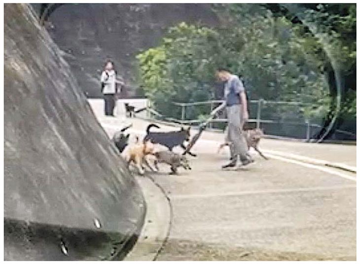 至上周四,陳的朋友駕車上山時再遇見涉事男子,見到他手持雨傘指向野豬,似指揮4隻狗圍咬野豬。