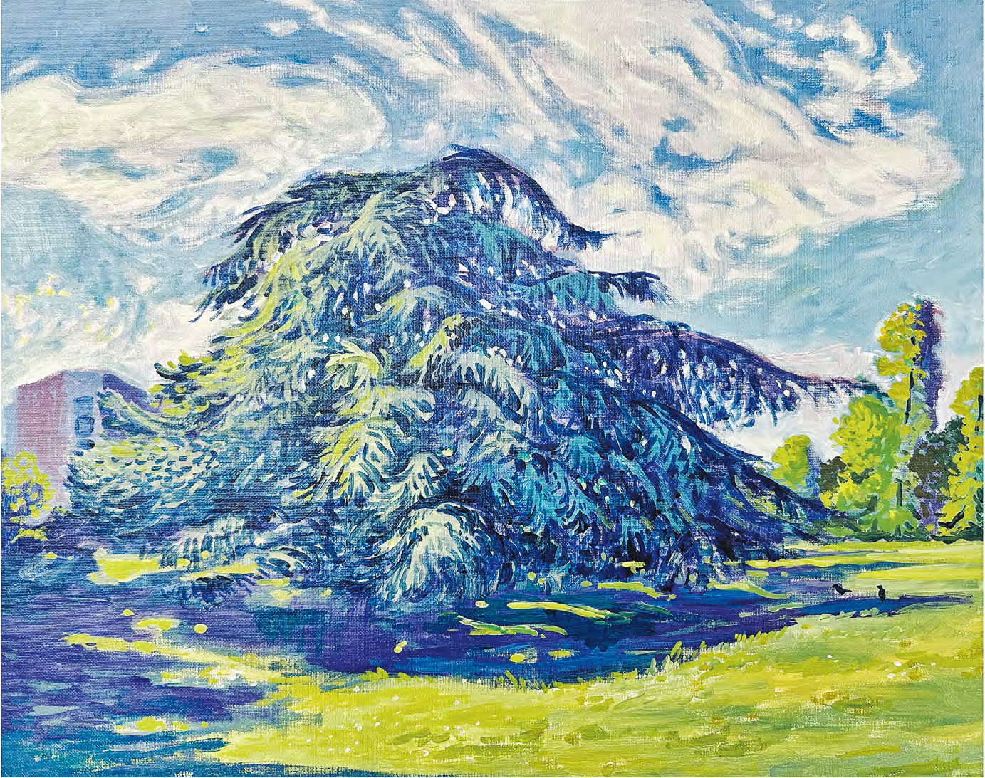 同樣迷戀自然的黃進曦和李香蘭,在歐亞兩端隔空寫生交談,也跟自然對話。他們逐筆逐畫,細微繪現眼前植物——牛津大學公園茂密的松樹、沙田禾輋成熟的大樹菠蘿。