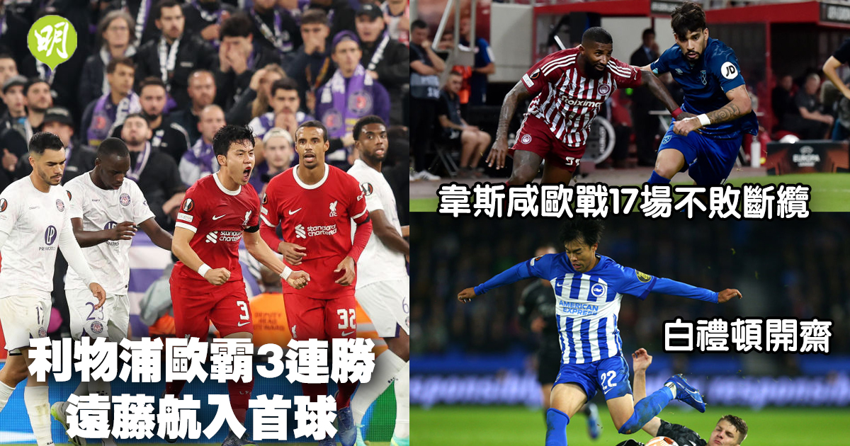 歐霸︱利物浦3連勝遠藤航入首球 韋斯咸歐戰17場不敗斷纜 白禮頓開齋 (16:30)
