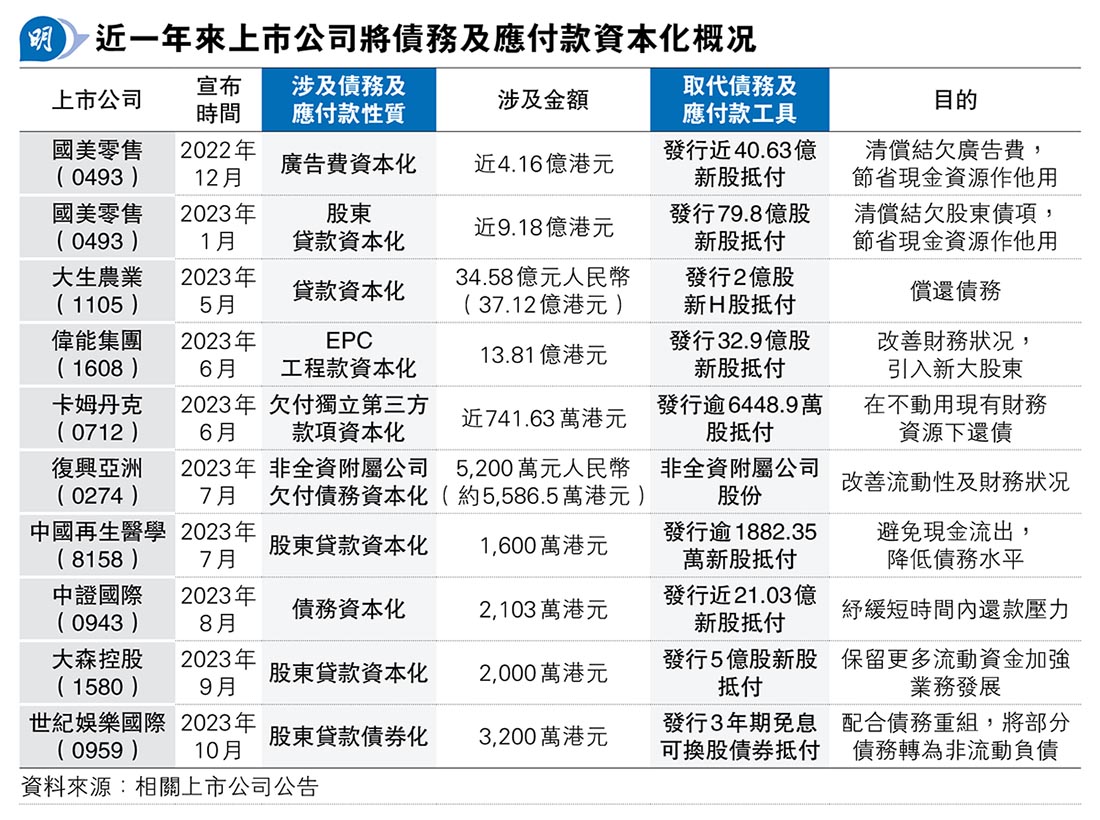 企業掀債轉股熱潮 逆境減現金支出 大生農業規模擬涉37億 國美廣告費亦資本化