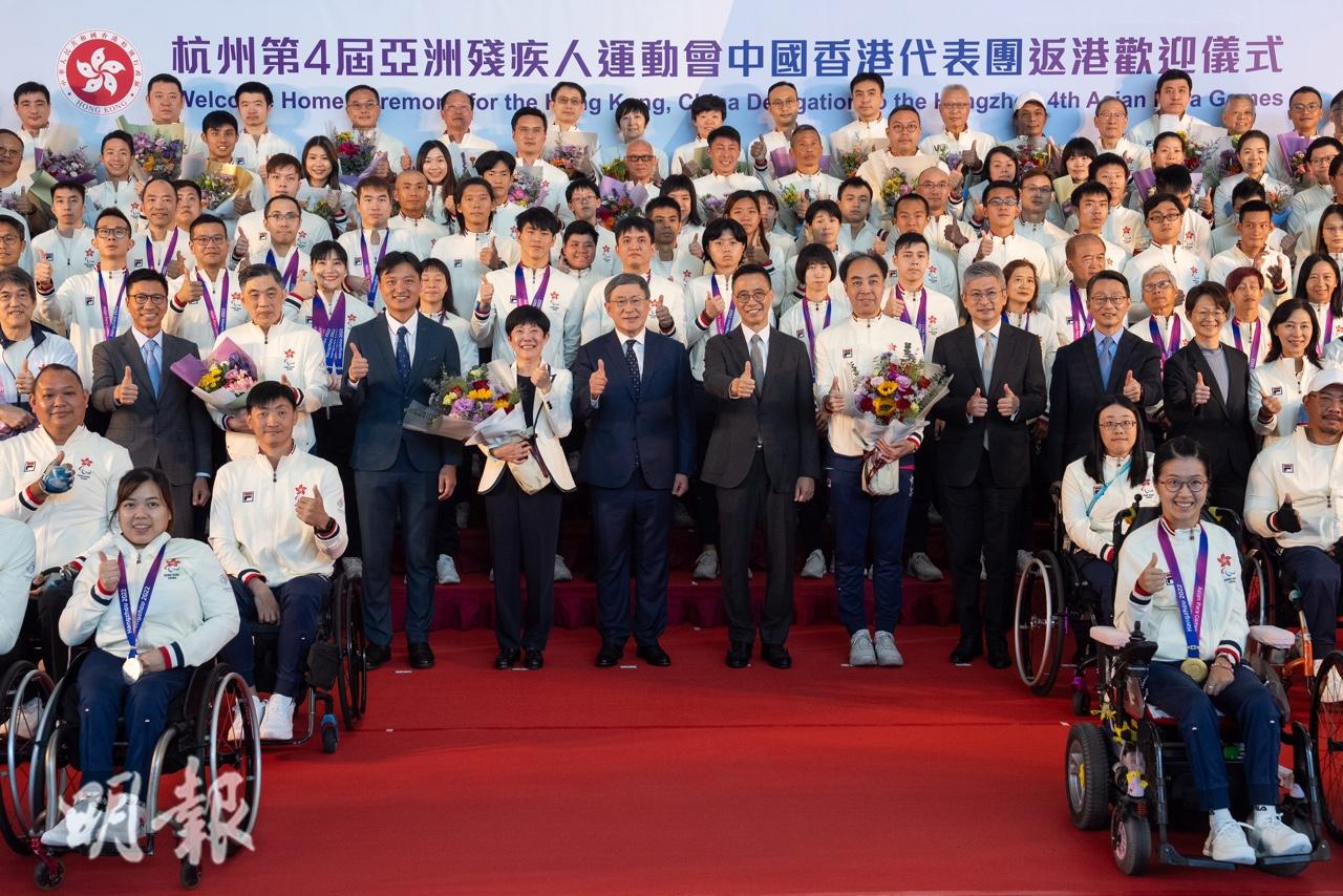 即時港聞 圖輯︳港隊亞殘運奪47面獎牌凱旋返港 政府機場辦歡迎儀式 (17:14) 發佈於 2 年 前 2023 年 10 月 29 日 By 明報 杭州亞殘運會昨晚(28日)閉幕,港隊今屆共取得8金15銀24銅,共47面獎牌。政府今在香港機場安排歡迎儀式,迎接各港隊代表凱旋返港。文化體育及旅遊局長楊潤雄表示,政府今個財政年度投放在殘疾人士體育的預算開支超過1.3億元,較5年前增逾8成,將繼續投放資源,支持殘疾人士體育發展。 政務司副司長卓永興表示,參加亞殘運的健兒,憑堅毅意志及艱辛苦練始能得到佳績,值得社會各界關注、鼓勵和支持,祝願他們再接再厲。中國香港殘疾人奧委會形容港隊成績驕人,衷心感謝政府對香港運動員支持,祝願各健兒未來再創佳績。 相關文章:亞洲殘疾人運動會楊潤雄港隊編輯推介運動員 Up Next 區議會選舉|實政圓桌擬派5人參選終僅1人夠提名 田北辰:3人允提名後撤回 逾200人拒聽政綱 (16:08) 不要錯過 山景邨涉「撻朵」阻鎖車再拘2人 有人潛逃澳門返港被捕 3人周一提堂 (17:02) 繼續閱讀 贊助商 猜你喜歡 警帶領選手旅巴 確保半小時內酒店抵賽場 全運會2025|全運港將一文睇 小車神李思穎爭衛冕 張家朗蔡俊彥何詩蓓出戰 (10:57) 羽毛球|鄧謝配法國賽無緣決賽 力戰3局反負國家隊 (17:54) 欖球|15人港隊踏上啟德主場館 友賽不敵日本二隊 7702球迷現場見證 (22:40) 欖球|港欖周五啟德友賽日本 隊長夏斯迪盼現場氣氛激發球員士氣 (17:11) 風帆港隊下周征全運 爭隔24年再奪牌
