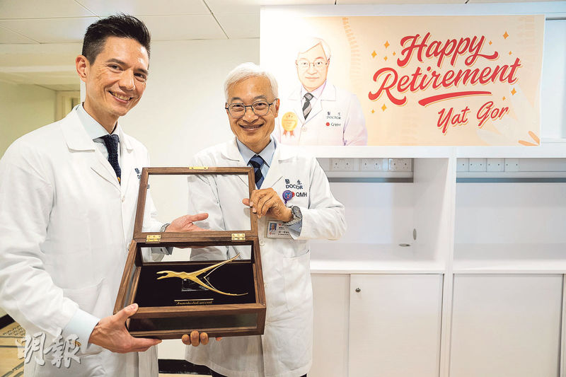 【明報專訊】「最捨不得的,就是我的病人。」行醫三十三載,黃一華早已滿頭白髮。明日退休的他,最牽掛的仍是病人,笑言這輩子只有一份工,「(退休後)有個案用得到我的,我就會過去」。瑪麗醫院矯形及創傷外科顧問醫生黃一華,既是病人眼中關懷體貼的好醫生,亦是年輕醫生眼中亦師亦友的好榜樣,而他早年引入本港的全脊椎切除術及頸椎弓根螺釘置入術,更為過往無法處理的嚴重脊柱畸形帶來希望。