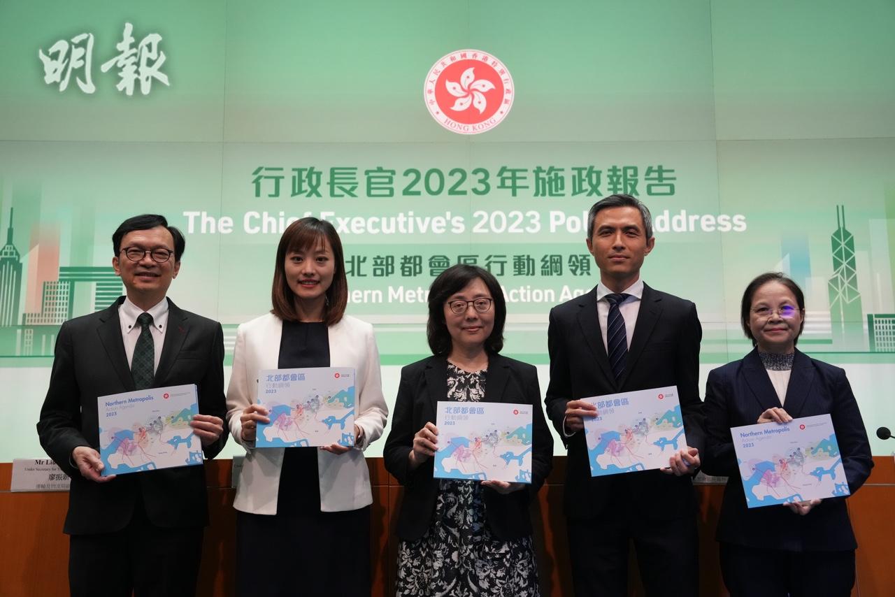 發展局公布《北部都會區行動綱領》,將由2021年提出的「雙城三圈」,改分為四大區域,料可提供超過50萬個新住宅單位。政府預計2024年或之前為所有新土地發展項目制定土地用途和發展方向、2027年或之前為主要發展項目啟動收地程序、2032年或之前完成平整新發展土地和落成新增單位各4成。