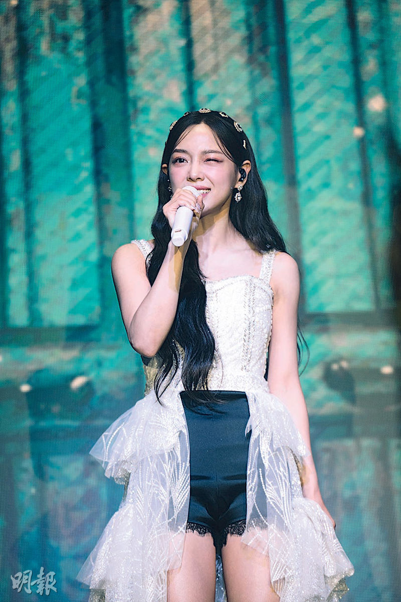 【明報專訊】韓國女團I.O.I及gugudan成員出身、韓劇《社內相親》女星金世正前晚在九龍灣國際展貿中心舉行首次個人巡迴演唱會《2023 KIM SEJEONG 1st CONCERT「The 門」》香港站演出,先以銀白色女神造型登場,接連唱出《Whale》及《Destiny》,然後以普通話高呼:「大家好,我是金世正,見到你們很高興。」再轉用廣東話:「好正呀!」台下粉絲歡呼回應。