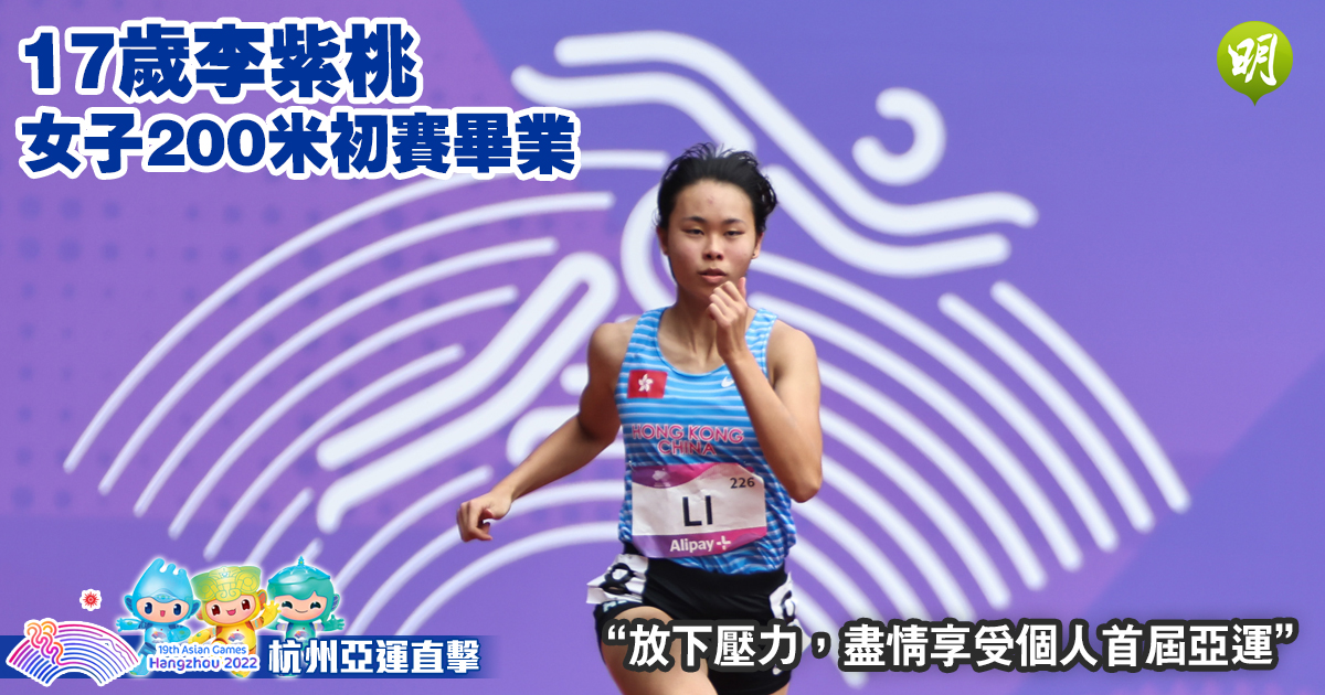 香港田徑隊今(1日)續戰杭州亞運,「學界飛人」李紫桃在女子200米初賽跑出24.89秒,與自己保持的港青紀錄相差0.62秒,但這名年僅17歲的田徑新星放下壓力,盡情享受個人首屆亞運。