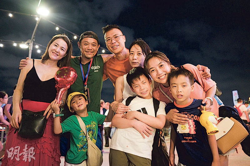 港人蘇先生一行7人到場賞煙花,他說闊別煙花匯演多時,故特意與女兒及其同學兩家人一同到場觀賞,形容氣氛熱鬧,找到觀賞位置後便與女兒及其同學閒逛感受氣氛。居住北區的他下午4時已出門,提早到場等候,蘇先生就讀小學四年級的女兒則表示「勁興奮」。