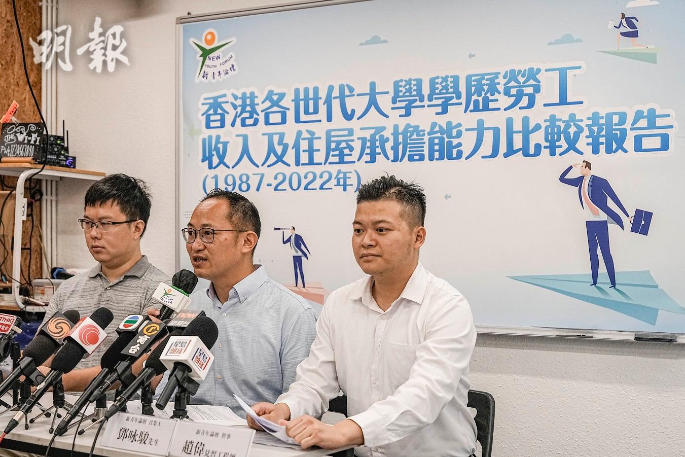 新青年論壇幹事趙偉指出,雖然年輕的大學學歷勞工初入職及其後增長升幅的數據在近年均有改善,但由於貿易戰、美國加息以及中國大陸經濟轉型等因素,香港經濟恐怕不能獨善其身,對於初人職場的大學學歷勞工而言,挑戰尤為嚴峻。