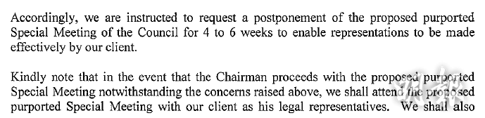 有消息人士向本報指,港大校委會原擬周二緊急召開特別會議,處理多宗針對校長張翔的指控。張翔昨日(2日)委託律師向校委成員發出信,稱由於今日會議涉及對張翔的極嚴重指控(extremely serious allegations),要求由律師陪同張翔出席特別校委會及日後所有校委會會議,並提出延遲會議4至6周,以確保程序公平,及讓張翔有足夠時間準備。