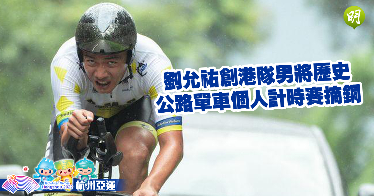 杭州亞運公路單車項目今日(3日)展開,首日分別進行男、女子個人計時賽。港隊憑劉允祐在男子組以50分17.76秒的成績,摘下一面銅牌,是港隊在此項首面男子組獎牌。早前已在場地單車團體追逐賽獲得銅牌的梁穎儀,則在女子組得「梗頸四」。