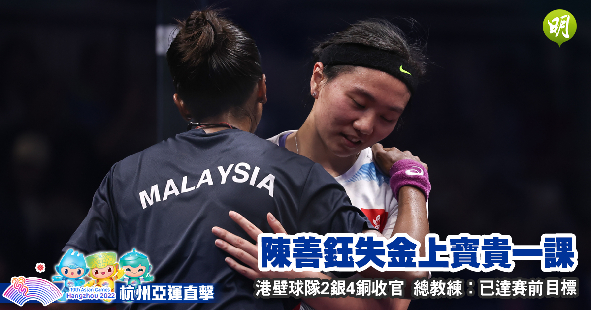 杭州亞運直擊|陳善鈺失金「上寶貴一課」 港壁球隊2銀4銅收官 總教練:已達賽前目標 (21:45)