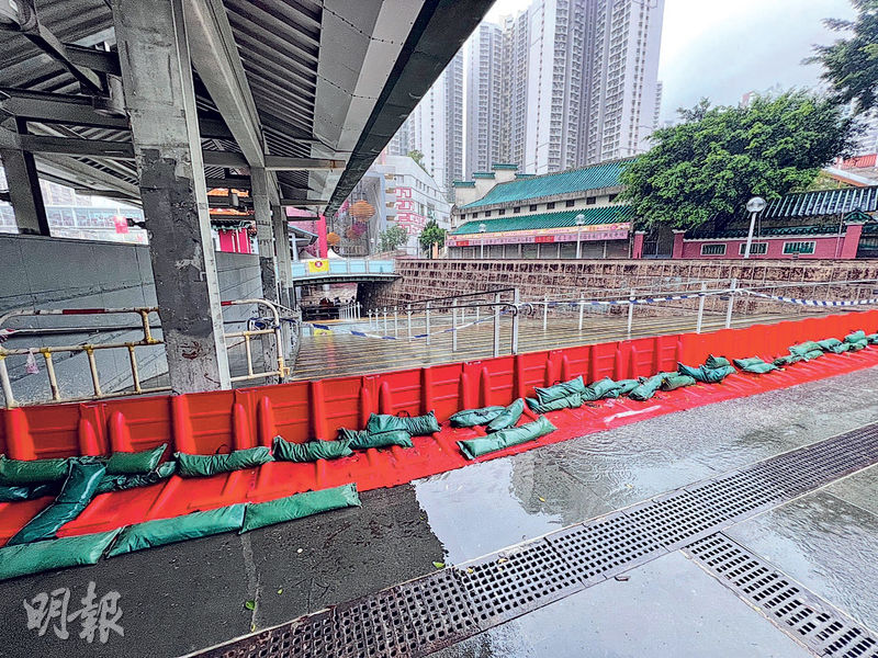 嚴陣以待 黃大仙中心環翠車場築防水板堆沙包