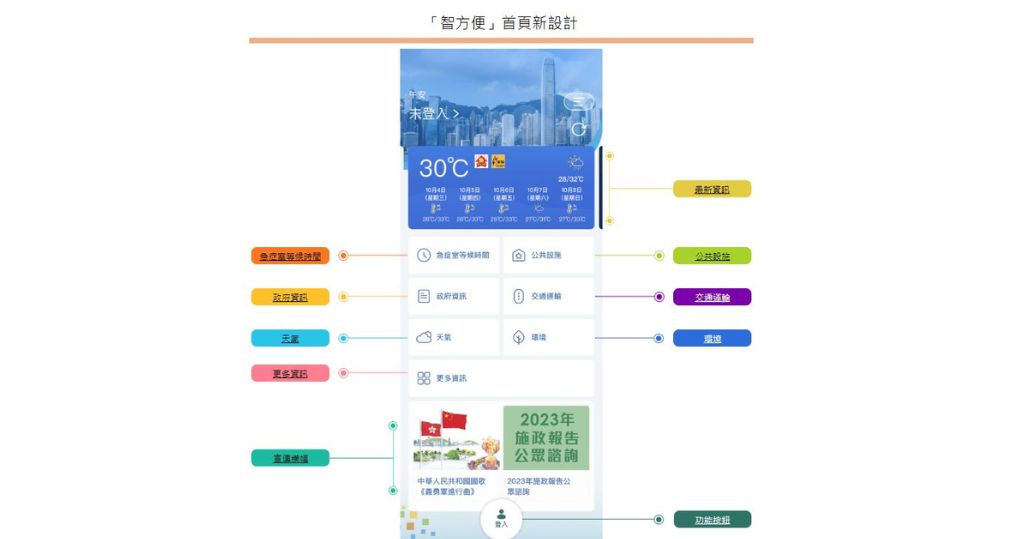 政府近日更新「智方便」流動應用程式最新版本,即使未登記或登入「智方便」戶口亦可瀏覽多項即時生活資訊,包括本地實時天氣、交通狀況、政府資訊、公共設施(包括康體設施、診所及郵局等)位置,以及急症室等候時間。若同時登記「智方便」戶口,更可即時接達300項政府同公私營機構的網上服務,包括「康體通」、「醫健通」、續領車輛牌照、申請國際駕駛許可證等功能。