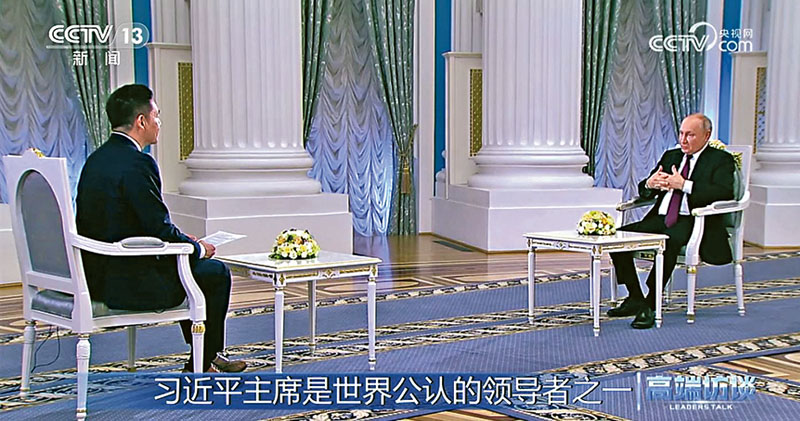 赴京「帶路」前夕央視專訪 普京讚習真領袖 非國際舞台「臨時工」