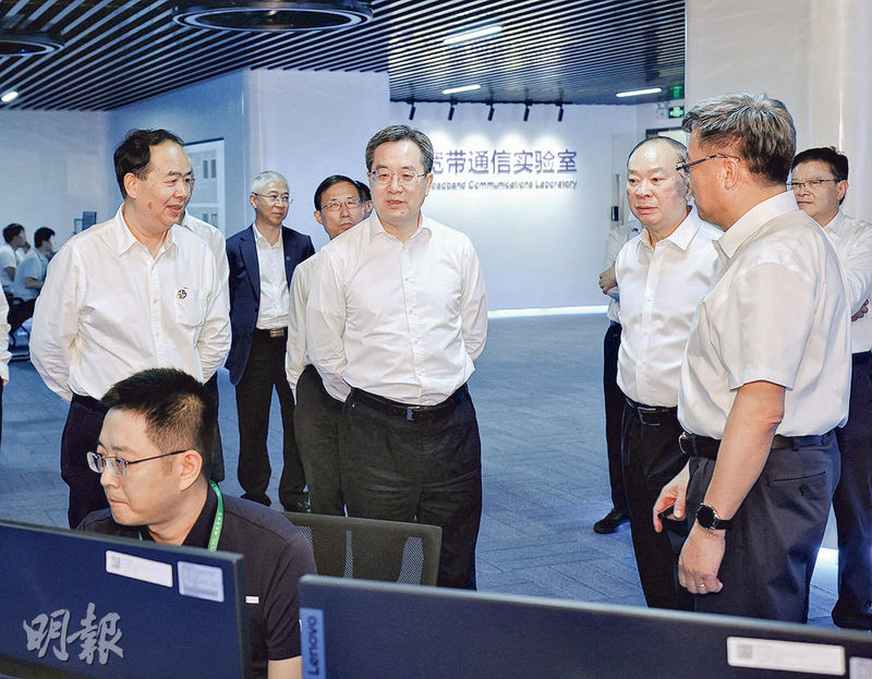 丁薛祥又到訪鵬城實驗室,了解實驗室建設運行和重大項目技術突破的情况,希望實驗室聚焦重點領域開展戰略性、前瞻性、基礎性研究,加強與高校、科研院所、科技領軍企業等合作。其後他到深圳職業技術大學,調研產教融合、科教融合等,提到大學需完善職業教育體制機制、着力培養高質素人才等,並勉勵大學生珍惜時代機遇,不斷增長本領和才幹,在服務國家發展中實現人生理想和價值。
