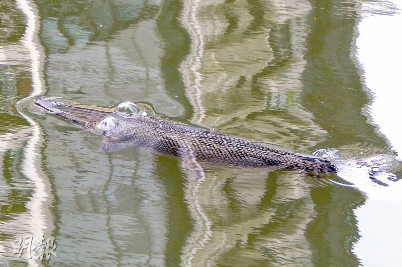 【明報專訊】啟德河出現兩條約一米長大魚,前日網上流傳相片,稱於啟德沐泰街對開一段啟德河目擊到其中一條福鱷。本報記者昨到現場觀察,見到一條背部呈褐色的約一米長大魚於河中慢慢游動。漁護署昨晚確認為福鱷(Atractosteus spatula)。有專家稱,福鱷為大型淡水魚,屬外來物種,幾乎無天敵,除捕食水中生物,更會襲擊岸邊雀鳥。他估計早前有人棄養,認為應移離牠們避免影響生態。漁護署稱視乎情况及需要向其他政府部門提供技術支援。
