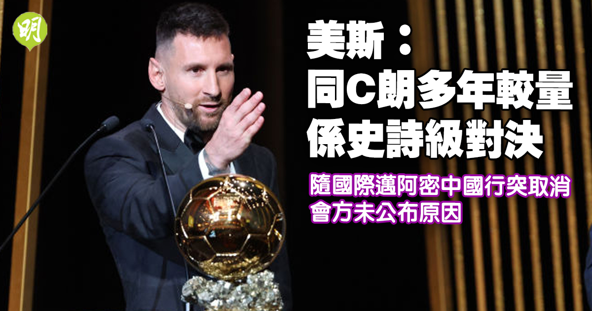 隨着破紀錄第8度贏得金球獎殊榮,已屆36歲的阿根廷球王美斯,與其「一生之敵」基斯坦奴朗拿度(C朗)的較量,也逐漸步向尾聲。美斯在得獎後的專訪中表示,他與C朗合演多年的「雙雄會」絕對稱得上是史詩級球壇對決,同時點名艾寧夏蘭特、基利安麥巴比及雲尼斯奧斯祖利亞等後起之秀,將會掀起金球獎新一代之爭。不過,原定將隨國際邁阿密本周末訪華踢友賽的他,因會方今突宣布取消而告吹。
