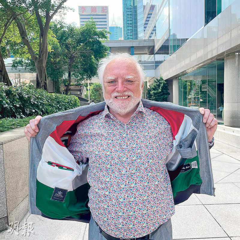 【明報專訊】白髮爺爺坐喺辦公枱前,一手拎住水杯對住鏡頭尷尬笑,呢張網絡迷因(Meme)圖近年被唔少網民惡搞,圖中主角噚日原來嚟咗香港!今年78歲嘅András Arató噚日應媒體邀請到港參加活動,佢喺社交平台上載咗自己扯開外套嘅搞笑相,寫上「A Hungarian in Hong Kong(一個匈牙利人在香港)」,本地網民紛紛留言話「Welcome to Hong Kong!」,希望喺街上見到佢可以一齊合照。Arató就喺活動影片用廣東話講「你哋好」,仲話覺得香港嘅海港好靚!