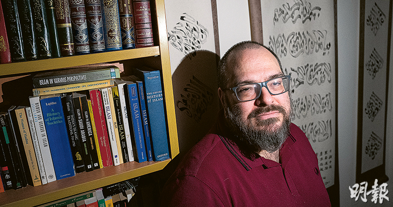 傅健士的辦公室有幾個大書櫃,書本之多令人眼花撩亂,光是有關伊斯蘭教的書便已獨佔一個大櫃,連《可蘭經》也有幾種文字譯本,「古蘭經、古兰經,Qurʾān……」。原來他主要研究中國伊斯蘭教的歷史,也曾在中國大陸住了1年,然後來到香港教學和定居至今差不多9年,能閱讀中文。他流利地說了句普通話:「(英文的chaos)是luàn(亂)。」說完感覺不好意思的,謙虛表示自己會說的不多,廣東話也不會說。
