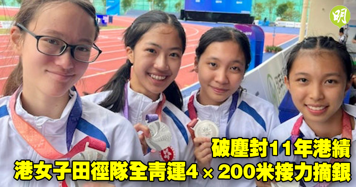 港隊今日(6日)在廣西舉行的第一屆全國學生青年運動會再傳捷報,當中田徑隊的白凱文、鄒子蕎、邱蒨庭及徐穎恩在女子4×200米接力決賽跑出1分36.71秒摘銀,以逾4秒優勢刷新塵封11年的香港紀錄;劍擊隊則有薛雅致在女佩個人賽掛銅,她明日將偕隊友轉戰團體賽。