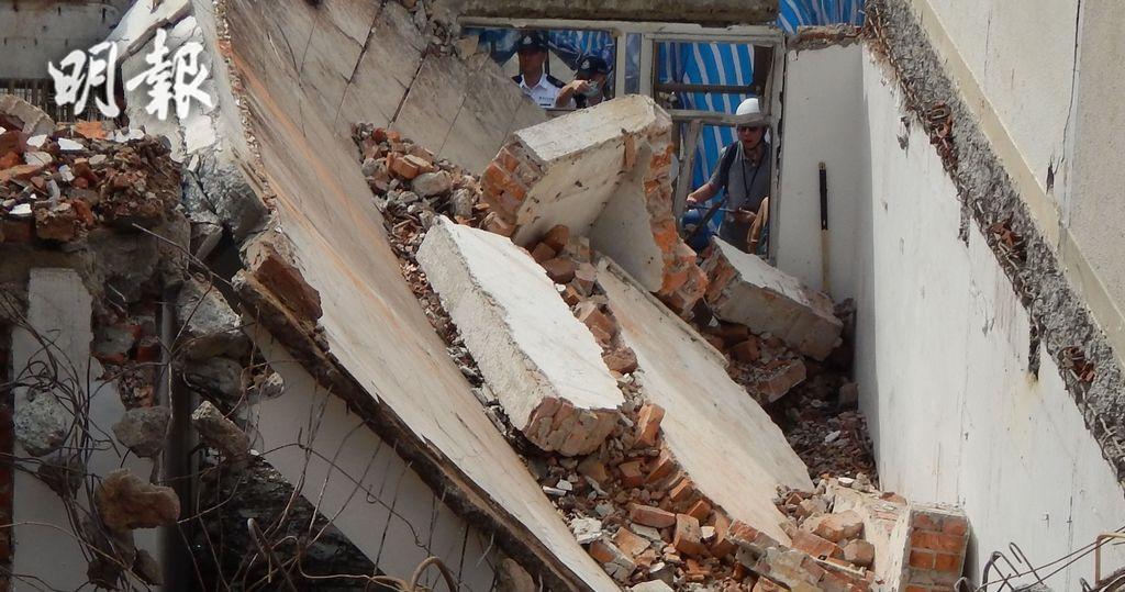 事發在昨早9時許,姓張事主獨自在村屋一樓以燒焊工具切斷該層的地板鋼筋,當切至剩下兩條鋼筋時,地台突然傾側,3塊體積約兩呎乘一呎乘一呎的石屎墜下,壓住其下肢。消防坍塌搜救隊救出昏迷男工,其頭及腳受傷,先送往仁濟醫院,再轉送瑪嘉烈醫院搶救。