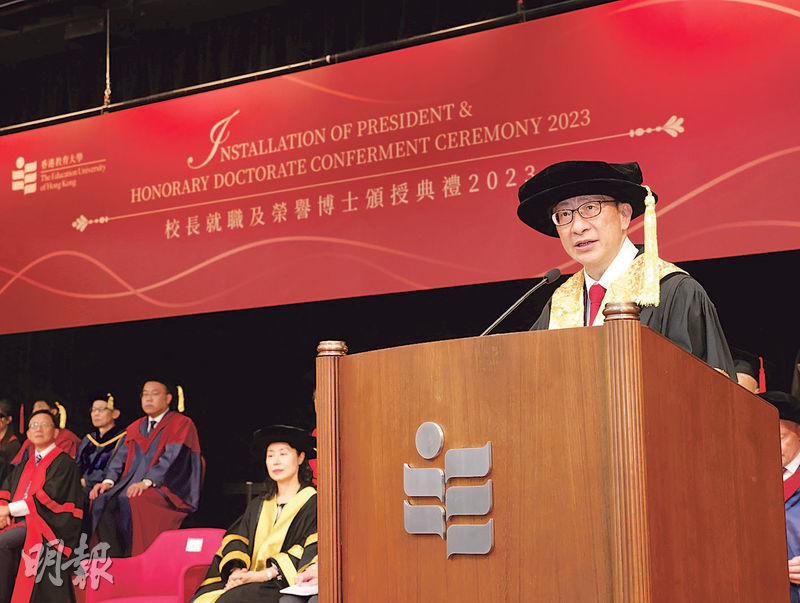教大昨為本學年接任校長的李子建舉行就職典禮,大學校董會、管理層及約600名嘉賓出席。李致辭稱,為回應局方《指引》,教大檢視師訓課程後,豐富了相關課程內容及課外活動,「尤其着重培育符合社會及國家期望,並擁有專業操守的教師」。