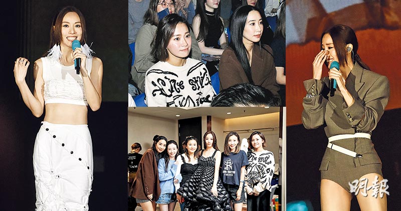 【明報專訊】鄧麗欣(Stephy)相隔16年再開演唱會,前晚在灣仔會展舉行《Therefore I Am》演唱會,跟她同出身於女團Cookies其中5名成員吳雨霏(Kary)、楊愛瑾(Miki)、區文詩(Angela)、陳素瑩(Gloria)及何綺玲(Elaine)齊現身支持,傳決裂7年的Kary與Miki更破冰孖住一齊坐,席上有傾有講。Stephy全晚換上不同服飾曬纖腰及長腿獻唱,又以鋼琴自彈自唱英文歌。當屏幕播出她的舊照,Stephy感觸落淚數度「甩嘴」,談感言時,稱成長路上曾為選擇而後悔。