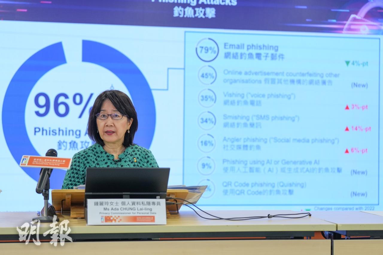 鍾麗玲提到,公署今年收到超過111宗資料外洩事故,當中公營機構佔約3成,私營機構佔約7成 。鍾麗玲說,數據反映不只公營機構有資料外洩風險,私營機構亦有,呼籲所有機構都應投放更多資源確保數據和網絡安全。
