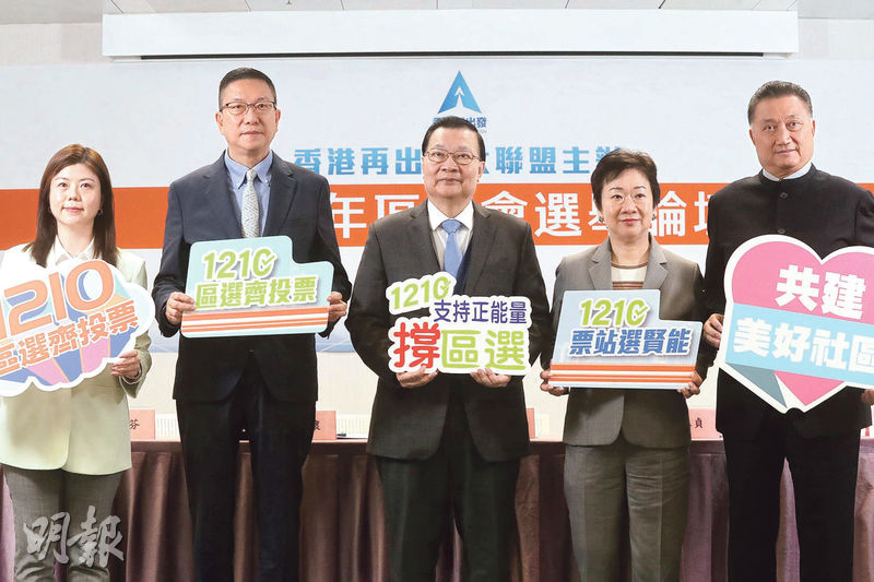 另外,香港再出發大聯盟將於11月28日起一連4日舉辦選舉論壇,在無綫新聞台「馬拉松式」直播,同時會在YouTube、facebook及部分網媒直播。論壇首兩日為直選論壇,其後兩日為地委會界別論壇,每日約6至7小時。大聯盟秘書長譚耀宗表示,選擇無綫電視直播因為過去曾合作,加上需找到連續拍攝4日的場地有困難,無綫能提供錄影廠及主持人,製作費「幾百萬元」。