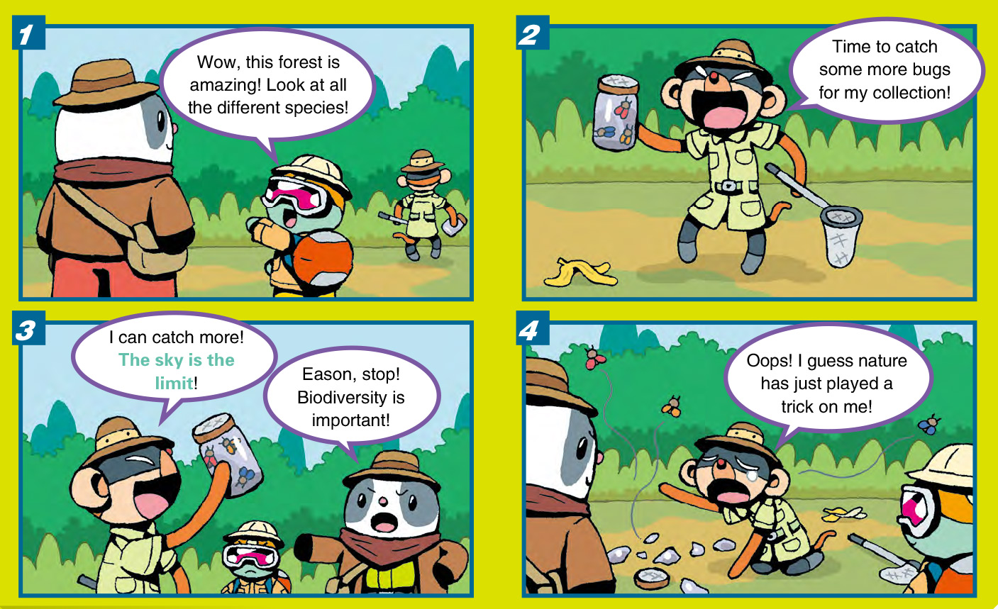 教育 Comic : Why does biodiversity matter? 發佈於 2 年 前 2023 年 11 月 15 日 By 明報 【明報專訊】The Smarties are walking around a rainforest for their field trip. 相關文章: Up Next 兩生告母校「髮禁」歧視索償 指校方罰示眾停課 悉性別不安症仍逼剪髮 不要錯過 公民科內地考察 多選兩天以上行程 本學年26項1至5天團 教局:廣深滬團受歡迎 繼續閱讀 贊助商 猜你喜歡